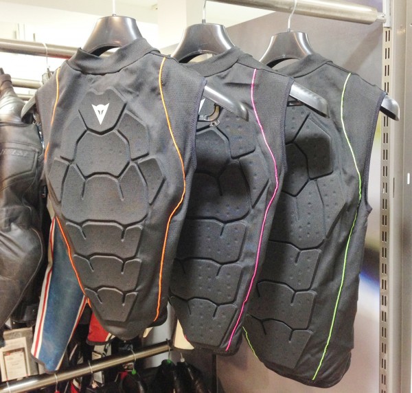 フロントは脇腹にプロテクターを配置、フルジップ仕様なので脱ぎ着も楽です。