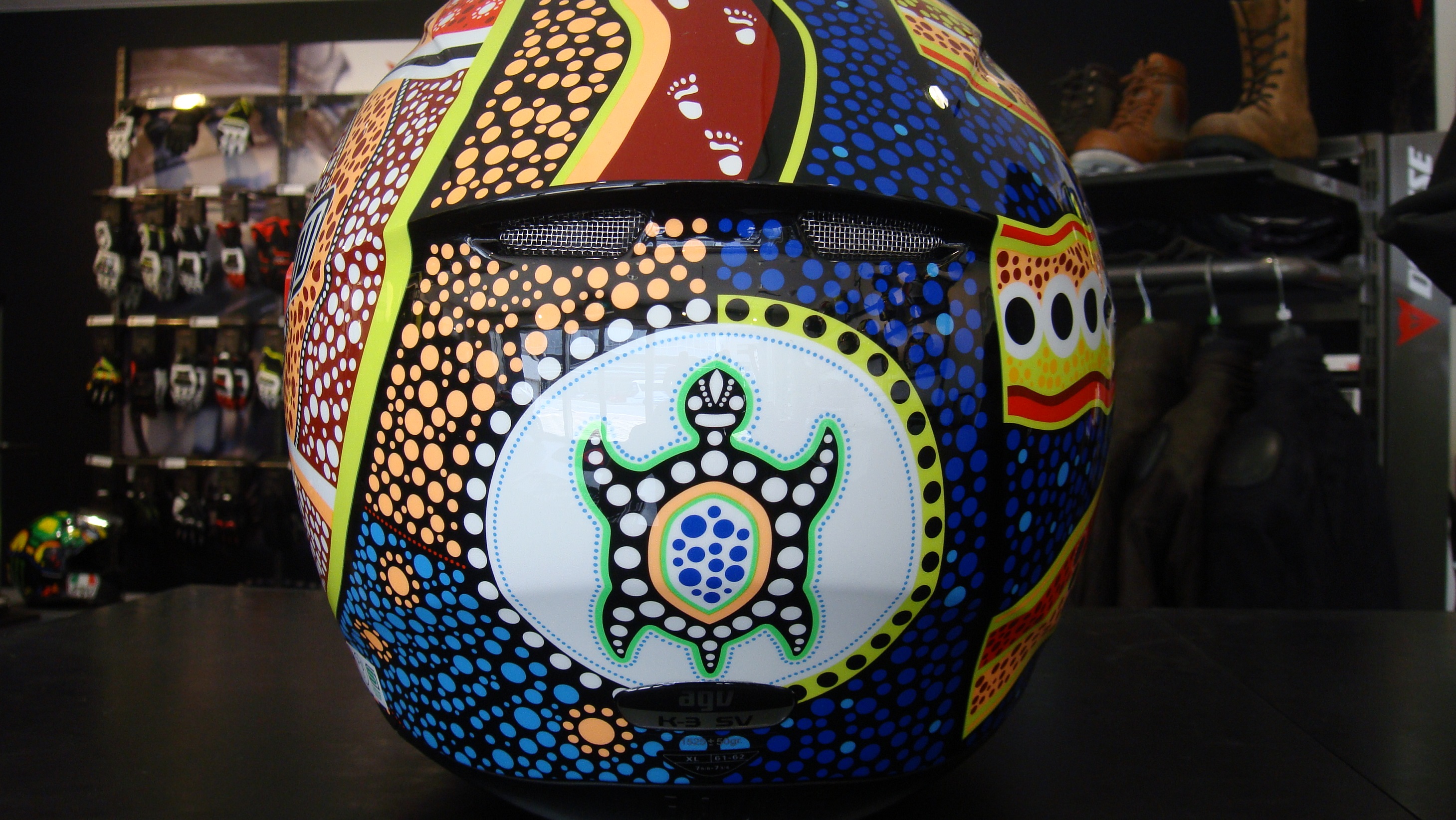 後頭部には46と愛犬が描かれており、スペシャルなヘルメットです!