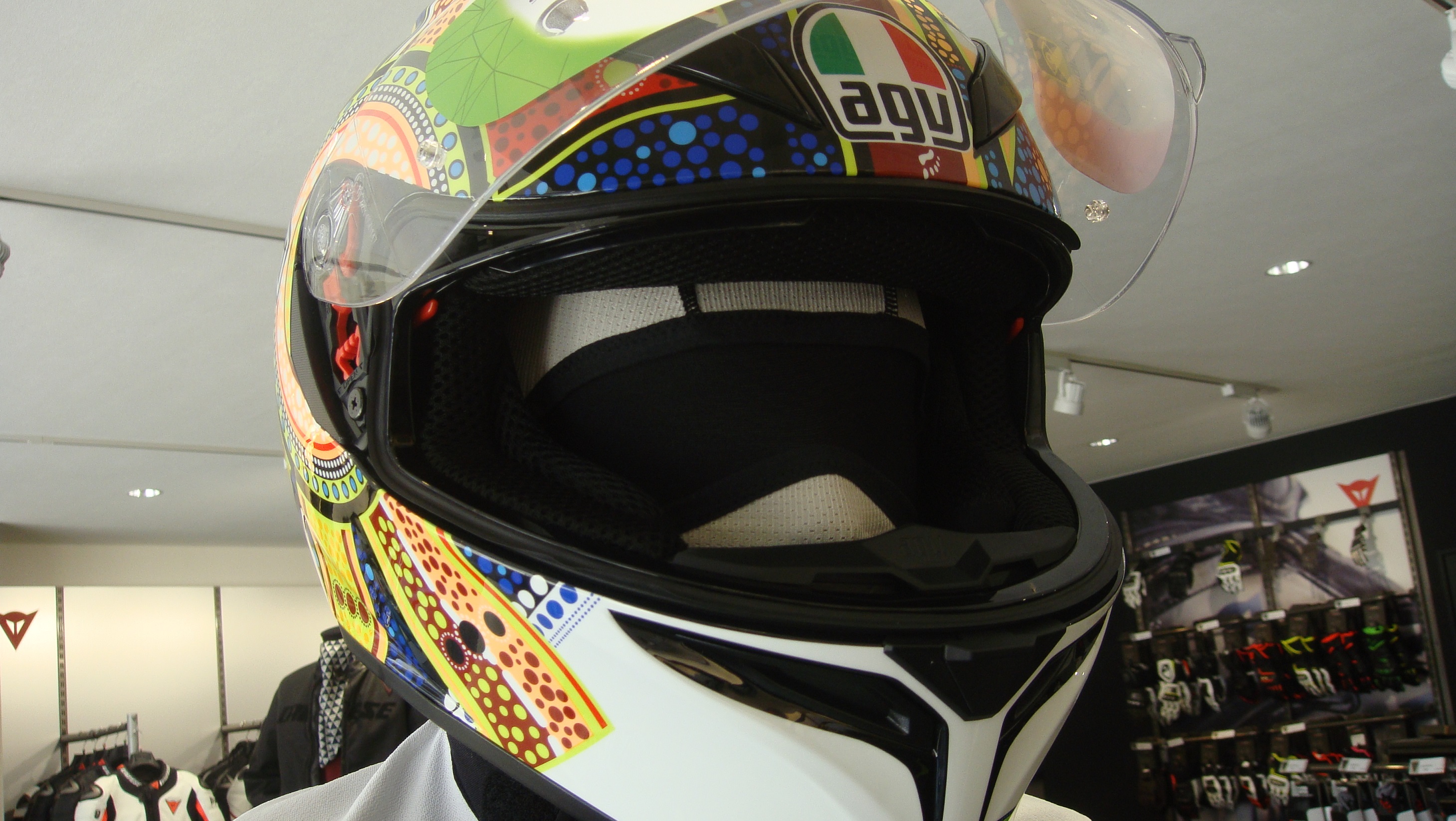 ヘルメットをかぶるときに下がらないようになっています(^^)b