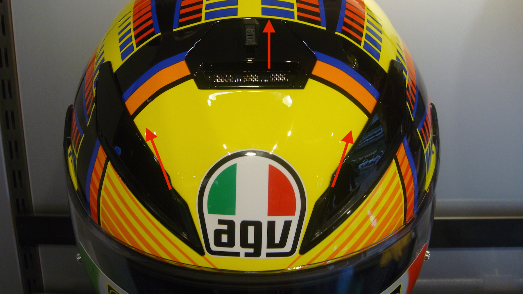 前頭部には開閉式のベンチレーションが3ヵ所ついております。