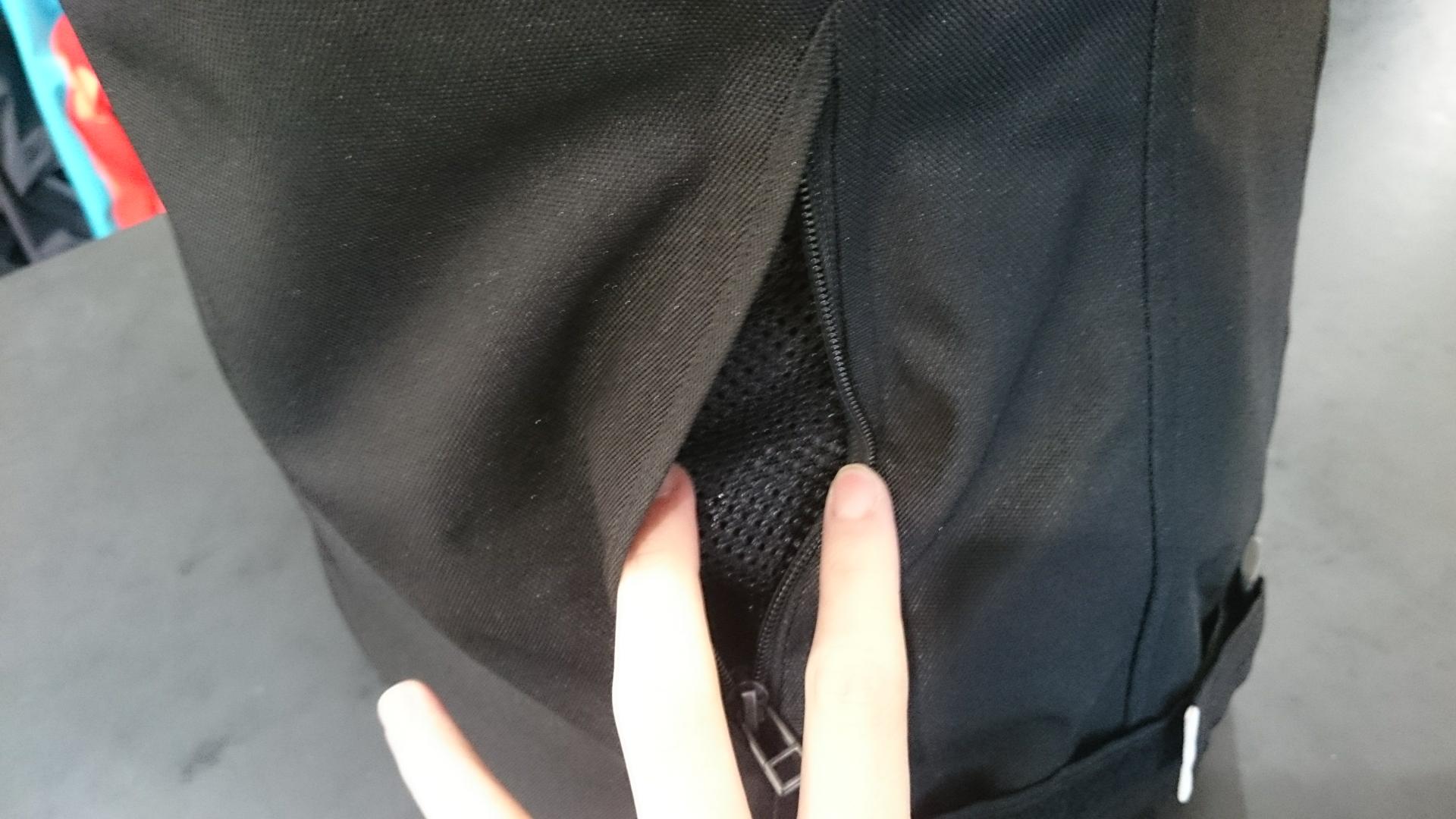 ジャケットのベンチレーションと組み合わせて温度調節が可能なので、