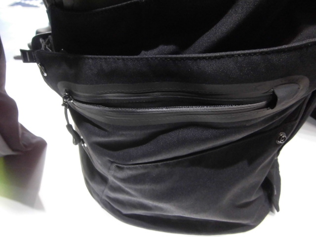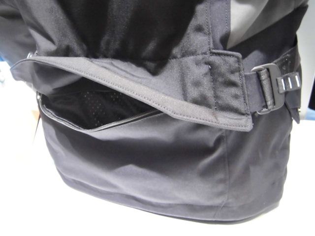 フロントポケットは完全防水となっており、腰の所にもポケットがあります。