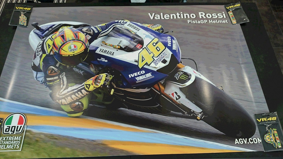ロッシ選手が、AGV PISTAGPのヘルメットを被ってヤマハM1にライディングした、とってもカッコいいポスターです!
