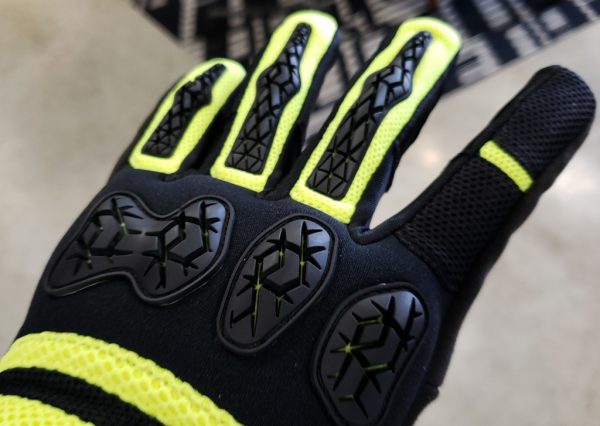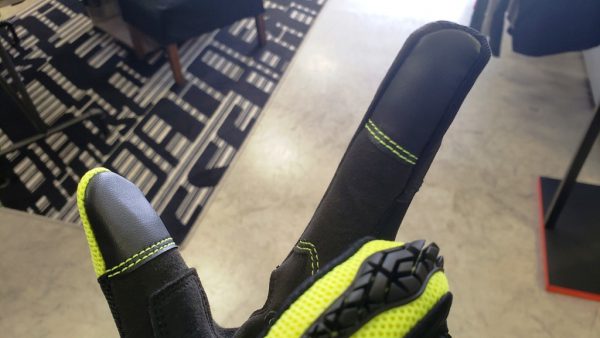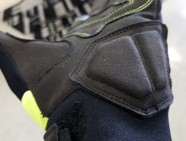 手の平はこんな感じに。マイクロスウェードが採用され耐久性がぐーんとアップ。それほど目立つ部分ではありませんが、蛍光イエローのステッチが目を惹きますね♪