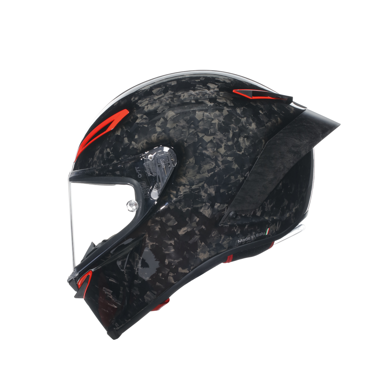 フォージドカーボンを艶ありに仕上げ、エアダクトを赤にすることで、よりイタリアらしいデザインに。