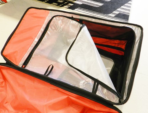 バイザーもすっぽり収まる容量です。このように、傷をつけたくないものだけ
