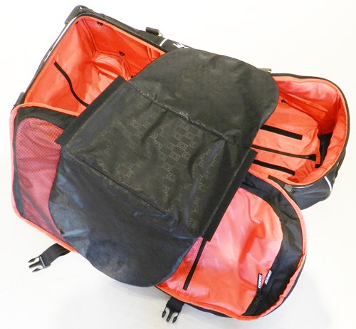 さらに仕切りが!ヘルメットだけ別に収納できたりもするのはGOOOOD!