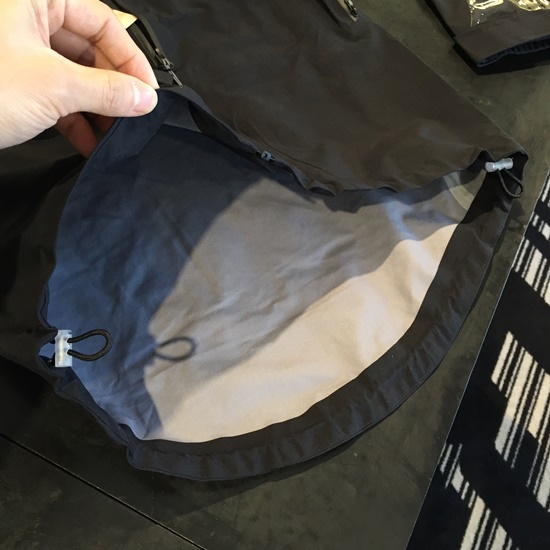 フード部に裾まわりを調整可能。