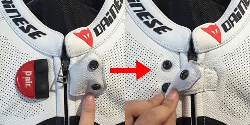 バイクとレザースーツを繋げる配線などがなく、レザースーツに内蔵された機械が衛星GPSとリンクし作動します。