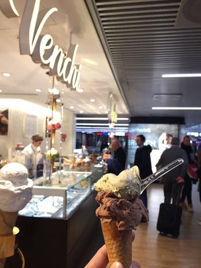 トランジットのローマ空港では、もはや毎度おなじみのVenchiでジェラートを頂きます。