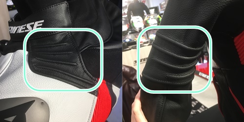 肩甲骨部分には伸縮性に富んだレザーシャーリングを配置しています。