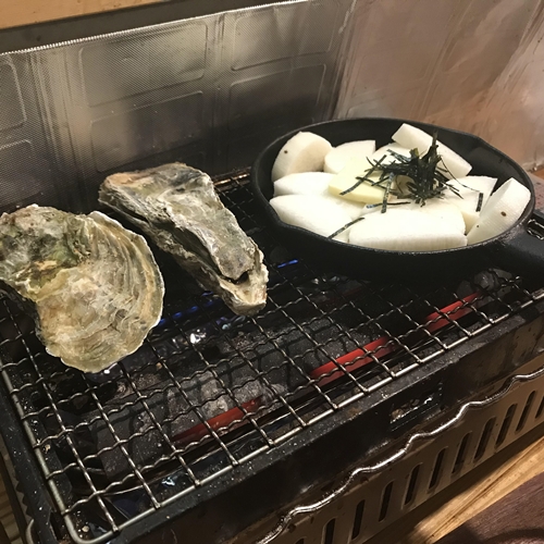 牡蠣と山芋をその場で焼いてもらいました!