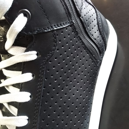 サイドのジッパー。脱ぎ履きがしやすく、快適にお使い頂ける工夫の一つです。