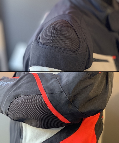 肩・肘部分には、標準装備の着脱可能なハードプロテクターに加え、3D fabricという