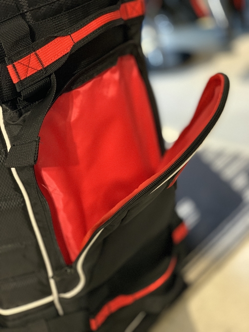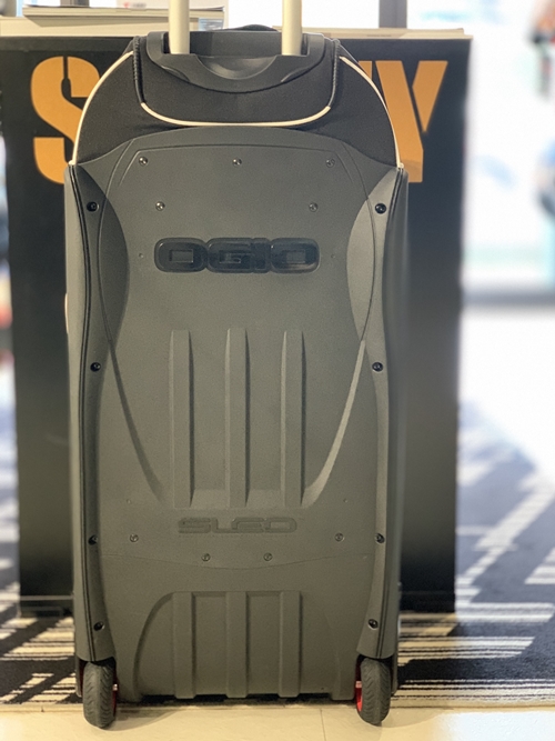 123Lと大容量のキャリーバッグで、フルフェイスヘルメットを3つ収納できる