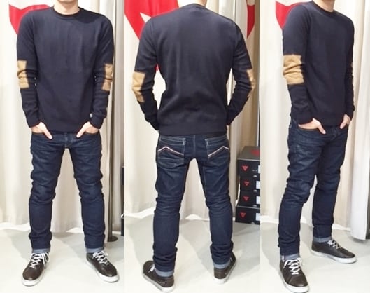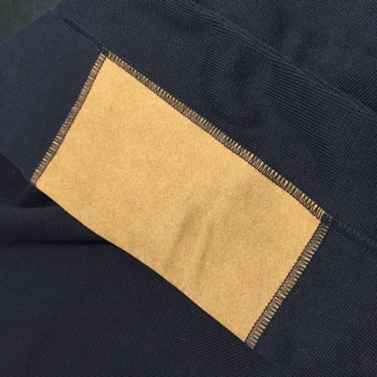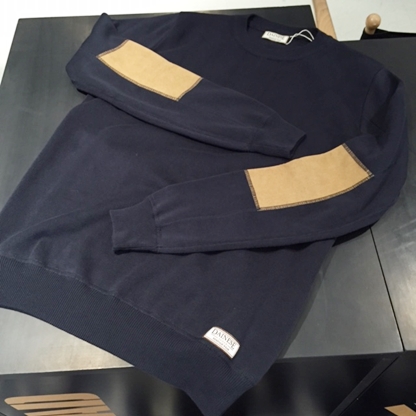 まずはコチラ!上質なコットンを採用し、肘にはレザーをあしらったセーターです。