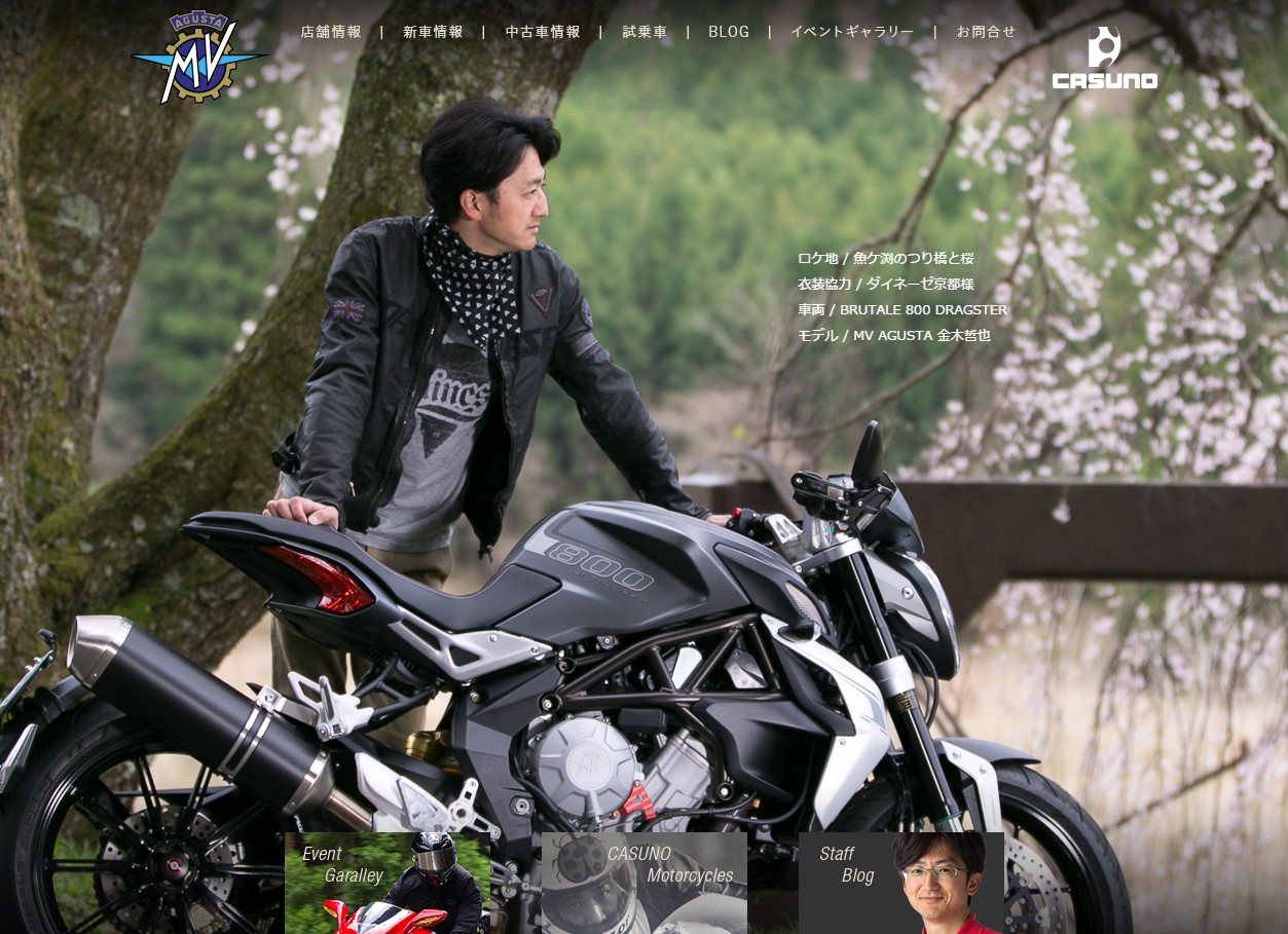 今回のお写真はカスノモーターサイクルMVアグスタページのTOPにてご使用いただいております^^