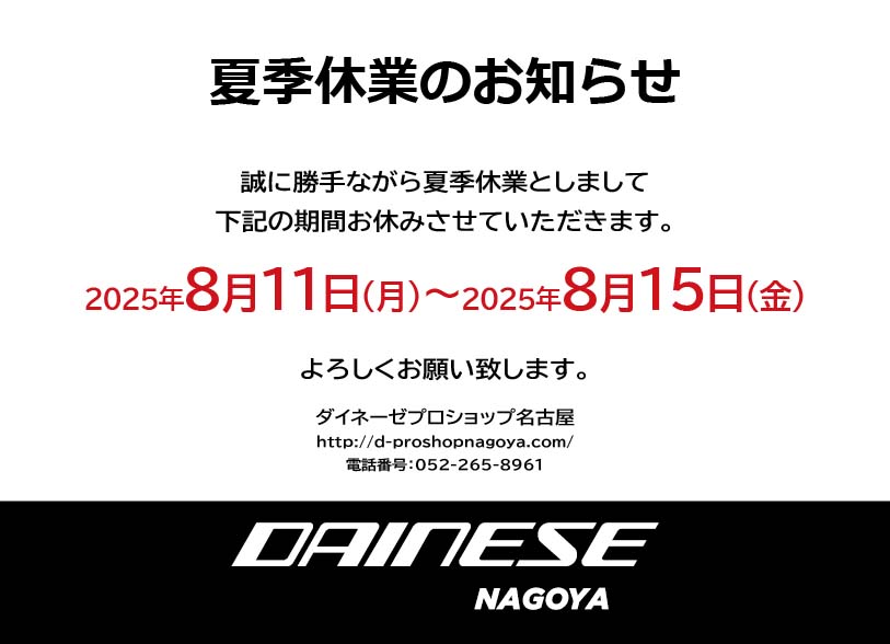 誠に勝手ながら、ダイネーゼ名古屋は8月11日(月)~8月15日(金)まで夏季休業とさせていただきます。