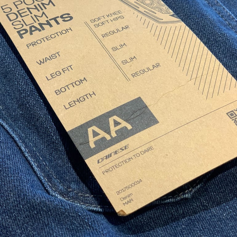 5-POCKET DENIM SLIM PANTSはEN 17092 クラスAA規格に適合しているので、ツーリングでも安心して使用することができます。