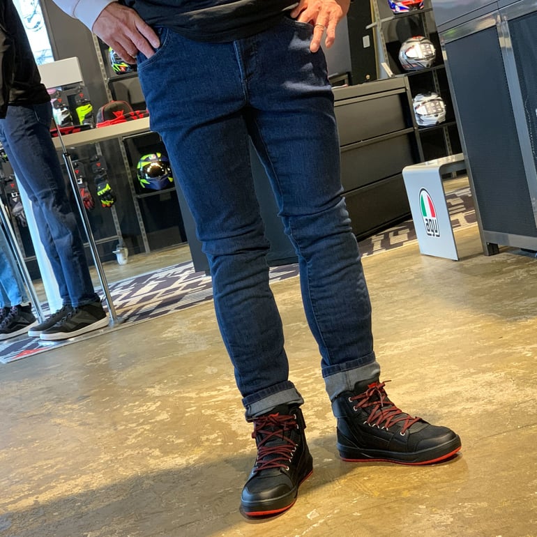 アーバンジーンズにインスパイアされたスリムフィットのモーターサイクルパンツ。日常使いにも適しています。