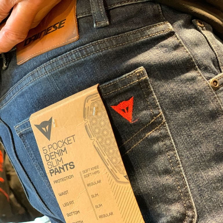 バイクに乗る時、多くのライダーはジャケットにプロテクターを入れてしっかりと装備しますが、意外と忘れがちなのがパンツのプロテクター。下半身も転倒時には大きなダメージを受けやすいため、膝や腰を守る装備はとても大切です。特にデニムパンツはカジュアルな見た目ながら、膝や腰にプロテクターが内蔵されており、転倒時の衝撃や摩擦から身体を守ってくれます。スタイリッシュで普段使いもしやすいため、安全性とデザイン性を両立したいライダーにおすすめのアイテムです。
