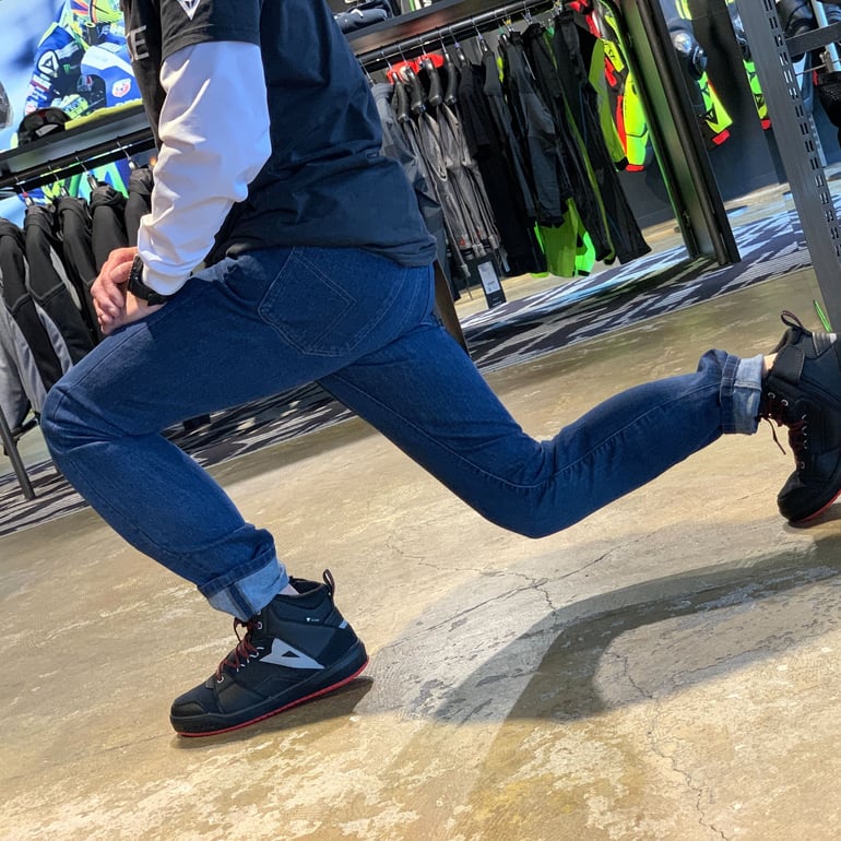 デニム生地には柔らかく軽量なストレッチデニム素材を使用しているので、屈伸などをしても突っ張る感覚は無く、非常に動きやすいです。前傾姿勢の強いスポーツバイクから、ツアラーバイクまで幅広いオートバイでも快適に使用できそうです。