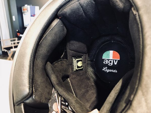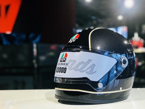 こだわりの1970年代AGVロゴはヘルメット中央に刻まれております。
